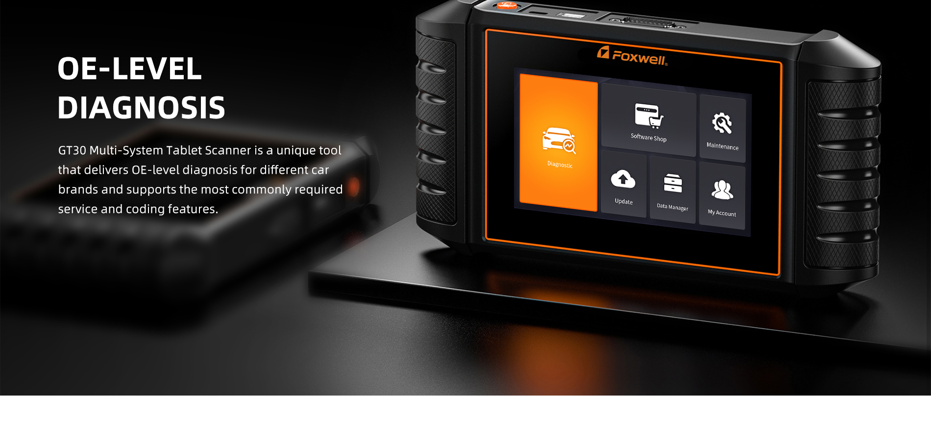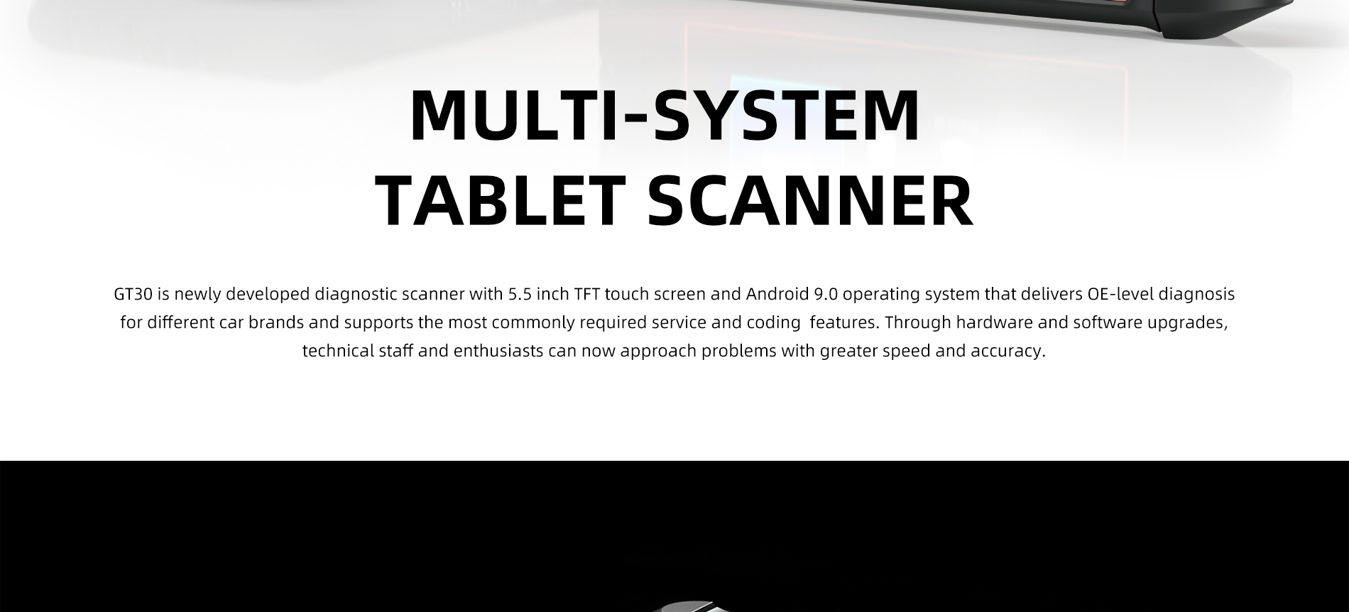 GT30 is newly developed diagnostic scanner with 5.5 inch TFT touch screen and Android 9.0 operating system that delivers OE-level diagnosis for different car brands and supports the most commonly required service and coding features. Through hardware and software upgrades, technical staff and enthusiasts can now approach problems with greater speed and accuracy.