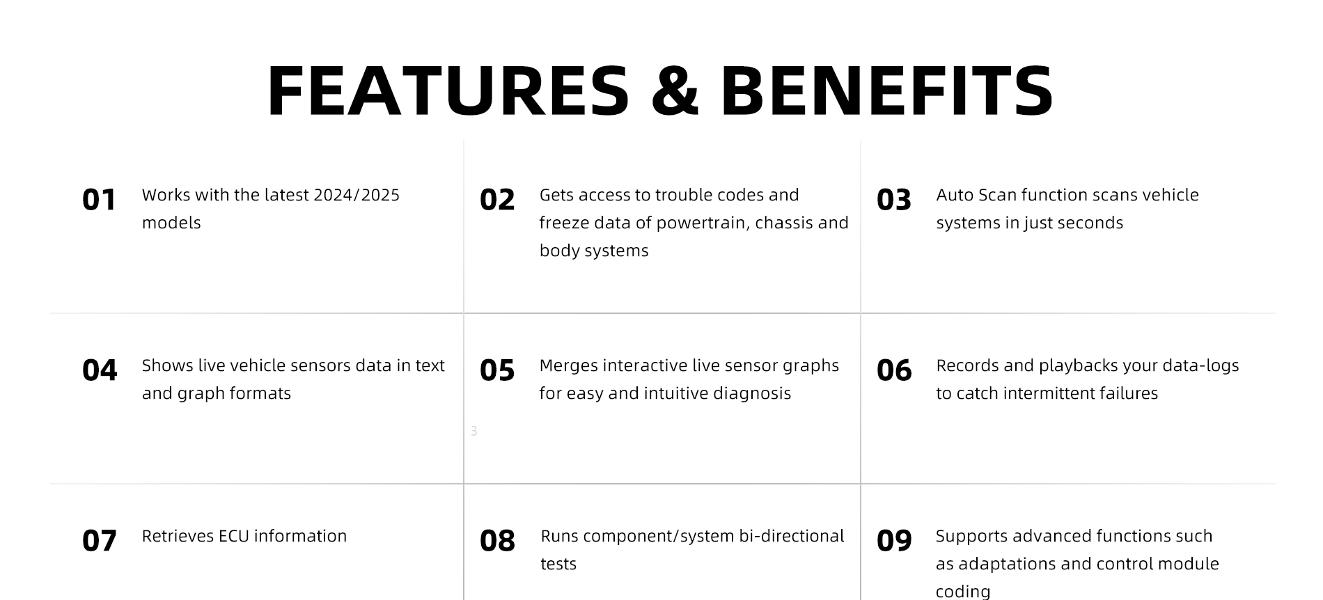 GT30 is newly developed diagnostic scanner with 5.5 inch TFT touch screen and Android 9.0 operating system that delivers OE-level diagnosis for different car brands and supports the most commonly required service and coding features. Through hardware and software upgrades, technical staff and enthusiasts can now approach problems with greater speed and accuracy.